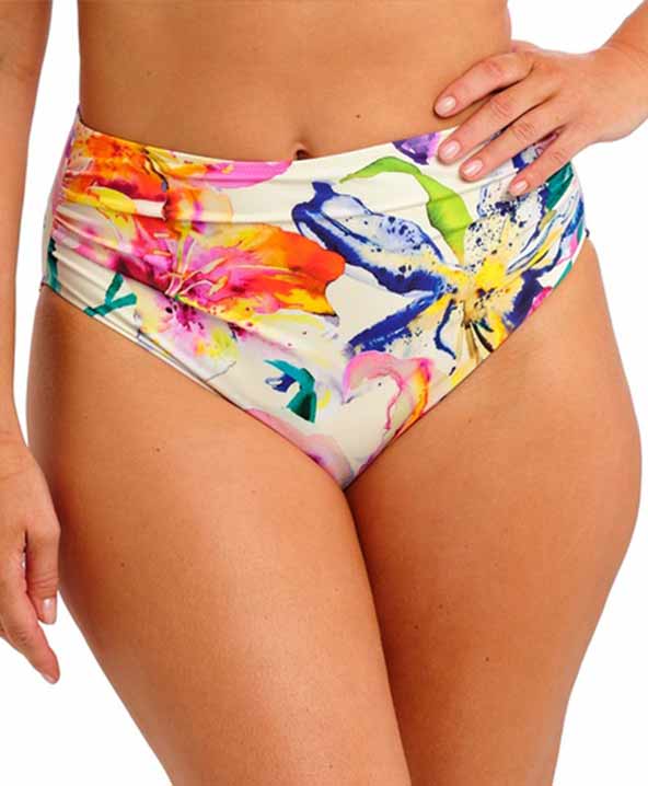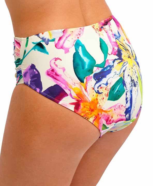 Lo slip alto arricciato valorizza la zona addominale è pensato per chi cerca una maggiore copertura, conferendo un effetto elegante e sofisticato.