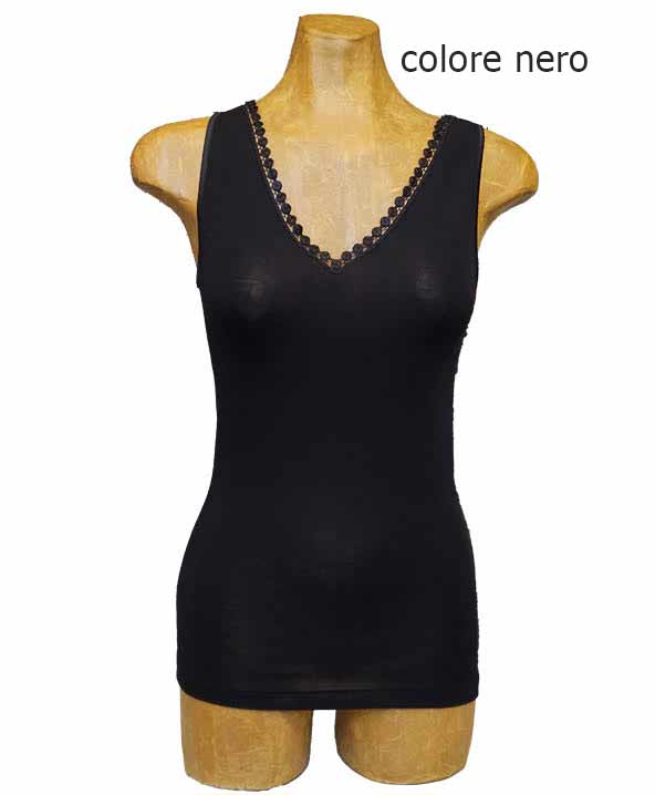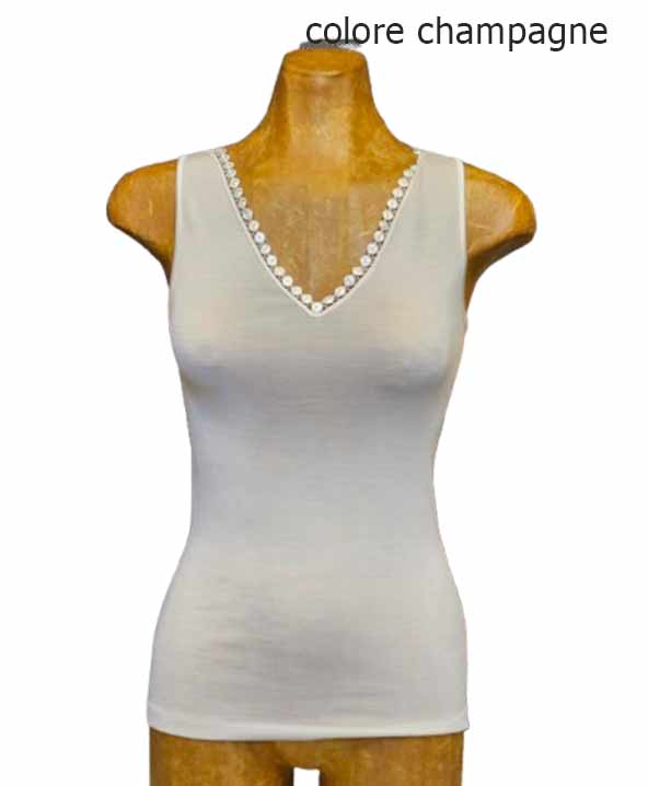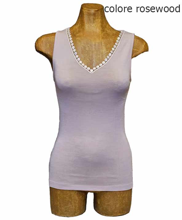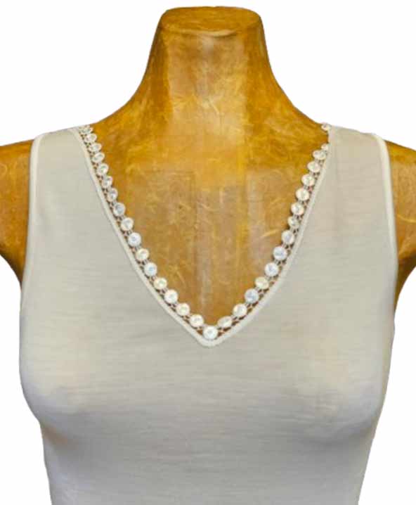 Canotta donna Oscalito in maglia a costina di Lana e Seta e Macramè