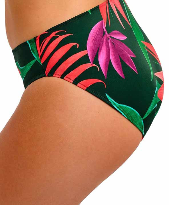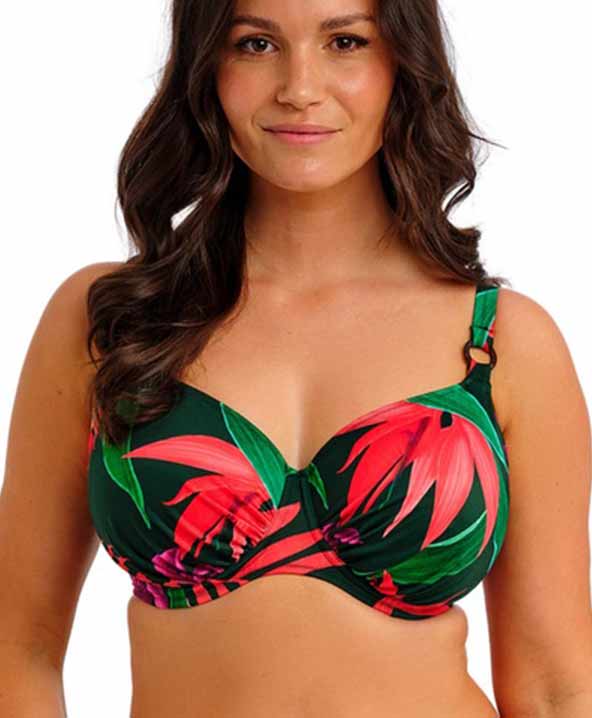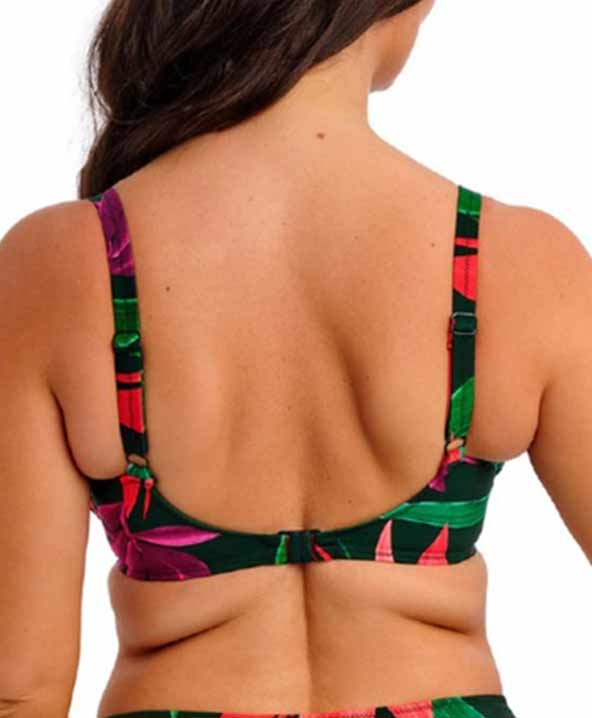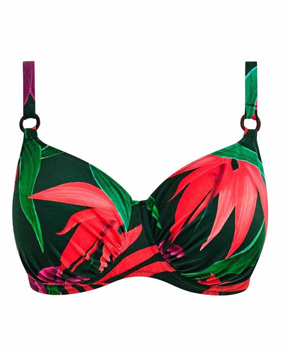 Costume da bagno bikini dai colori vivaci Pichola, caratterizzato da un’esuberante esposizione di floreale. Composto da un top con ferretto adatto per coppe grandi, abbinato a slip dal taglio classico. Il top modello Plunge con ferretto è una delle novità più recenti e vanta un profondo scollo a V, ferretti discretamente nascosti e una fodera interna leggera per una maggiore protezione delle coppe. Questo costume offre una combinazione perfetta di comfort e stile. Gli slip presentano un design classico e liscio, con una vestibilità tradizionale.