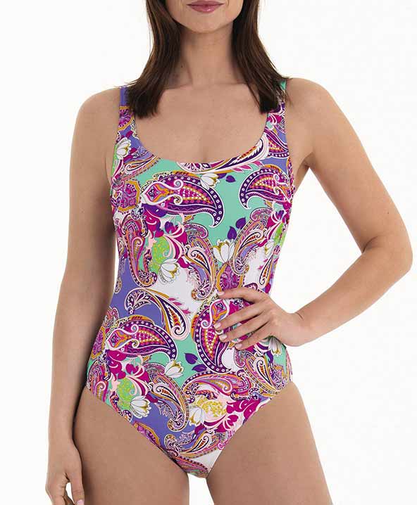 Clara è un costume da bagno intero e sobrio con una scollatura rotonda e un delicato arricciamento sul seno. È confezionato in un tessuto morbido e confortevole che assicura una vestibilità perfetta. Questo modello è l’ideale per chi desidera un’immagine casual e comoda. È un costume da bagno intero perfetto per le donne che cercano di vivere l’estate con libertà, beneficiando di un supporto efficace ma discreto.