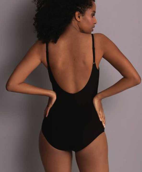 Questa creazione eccelle per il suo design innovativo, che si adatta perfettamente alle nuove tendenze del beach urban style. Caratterizzato da coppette rimovibili e da un elegante scollo a V offre una vestibilità versatile, in grado di valorizzare ogni silhouette. La scelta del colore nero non è casuale; è un classico senza tempo che dona eleganza e sofisticatezza anche in riva al mare.
