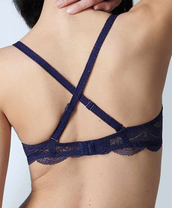- spalline multi-posizione classica e incrociata decorate in pizzo posizionate per una scollatura aperta