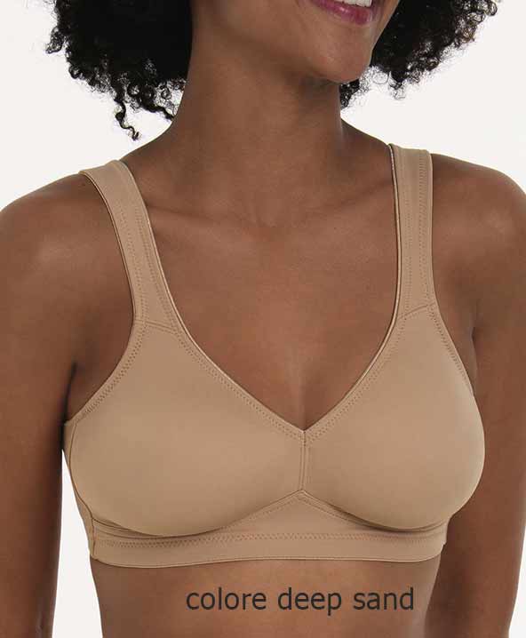 Tra i reggiseni “comfort” senza ferretto, il modello della serie Twin si distingue come uno dei più apprezzati e venduti a livello mondiale. Le sue coppe preformate in doppio strato di microfibra, morbide al tatto come la seta, e le spalline larghe assicurano un comfort superiore. Questo reggiseno è l’ideale per l’uso quotidiano e rappresenta un elemento essenziale nel guardaroba femminile.