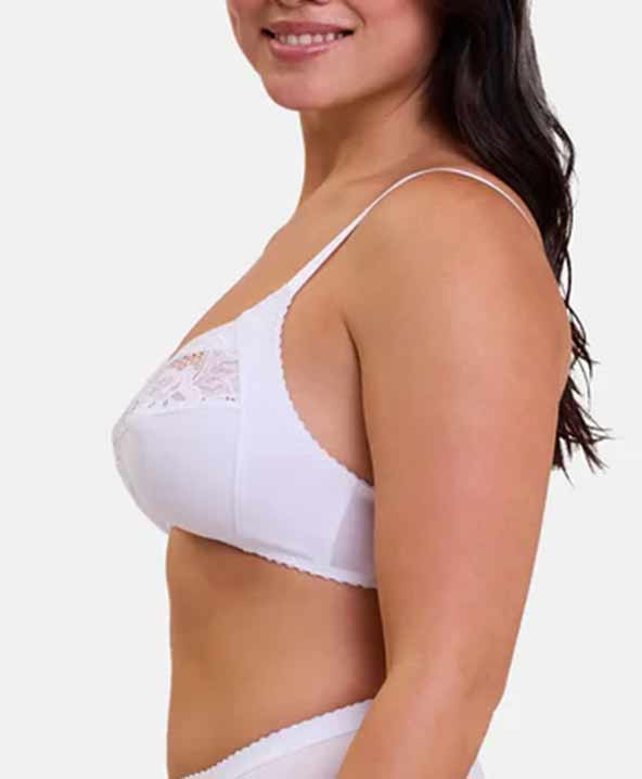 Infine, la chiusura con gancetti regolabili è progettata per adattarsi in modo preciso all’altezza del seno, assicurando una vestibilità perfetta. Il tassello in 100% cotone garantisce ulteriore comfort e traspirabilità. La scelta del colore bianco rende questo reggiseno un capo basico, essenziale nel cassetto della lingerie, perfetto per ogni donna che desidera combinare praticità e femminilità.