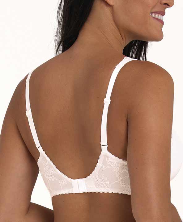 Il reggiseno con ferretto Bobette con coppe Spacer traspiranti è dotato di coppe senza cuciture leggermente brillanti rivestite di un tessuto a tinta unita che alleggerisce il look. Il ponticello del reggiseno è decorato con un piccolo fiocco con ciondolo. Particolarmente glamour: la parte posteriore è realizzata in pizzo allover, foderato con resistente powertulle, rinforzato lateralmente da una fodera non elastica.