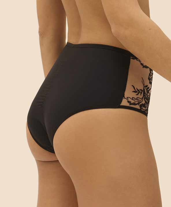 Un ulteriore elemento che contraddistingue questi slip a vita alta è l’elastico in vita, arricchito da un nodo decorativo. Questa particolare finitura non è solo un dettaglio estetico, ma testimonia l’attenzione al design e alla funzionalità. Infatti, l’elastico, oltre a garantire comfort e sostegno, conferisce un ulteriore tocco di originalità al capo, permettendo di esprimere il proprio stile anche nella scelta della biancheria intima.